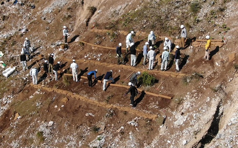 【画像:伊吹山での土砂流出防止に向けた植生マットの試験施工】