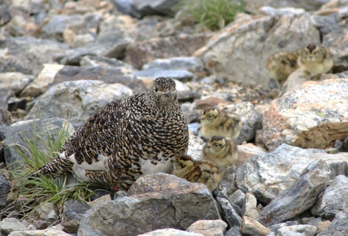 ※写真は、ライチョウの秋群れです。保護色で風景にとてもよく溶け込んでいます。