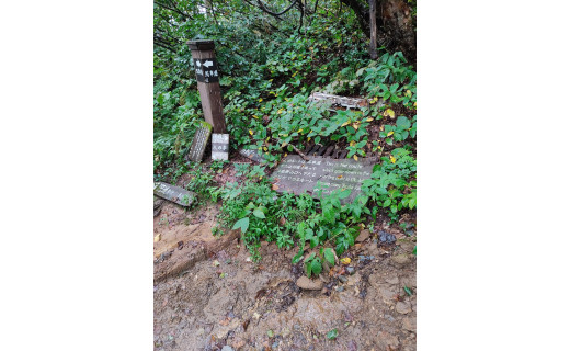 <修繕作業>老朽化した道標を掘り出し、新たな道標に交換します。