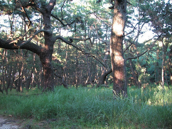 その結果、松原内に松葉がたまり、土が肥えて広葉樹が繁茂し、松の成長を阻害するようになりました。また、松くい虫による松の枯死被害も年々深刻化しています。
