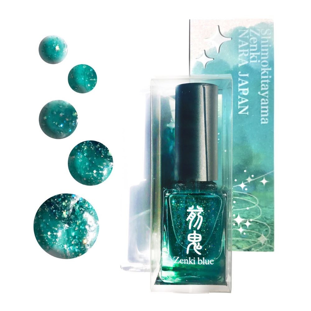 そんなエメラルドブルーを小瓶に詰めてみたくて作った「前鬼ブルー」をイメージしたネイルマニキュアです。