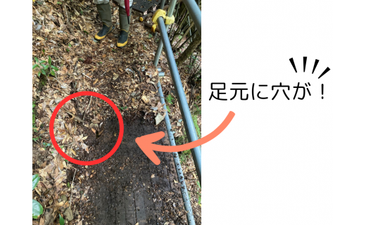 足元に穴が開いていたりなど、十分に注意しないと危ない状態でした。
