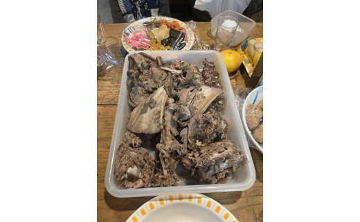 終わった後は、山で一番の御馳走の猪肉の骨付き肉をいただきました!
