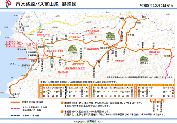 南房総市富山地区の交通結節点であるJR岩井駅、高速バス停留所・道の駅富楽里とみやまと、富山三山(伊予ケ岳、富山、御殿山)登山口、富山国保病院を結ぶ市営路線バス富山線が登山シーズンに入り好調です。