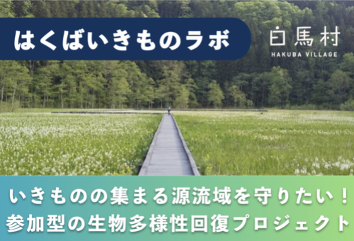 「姫川源流」と「親海湿原」を始めとする村内の自然環境の変化を受けて、白馬村では生物多様性の回復に向けたプロジェクトとして「はくばいきものラボ」を立ち上げました。