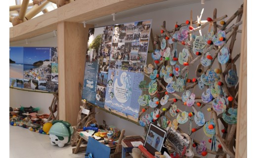 ワークショップだけでなく、海ごみアート作品の展示や映像とパネルによる対馬の漂着ごみ問題についての啓発活動も行いました。