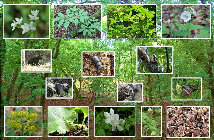 山麓には、ツキノワグマ、ニホンジカ、イノシシ、キツネなど、様々な哺乳類が生息し、多くの植物や昆虫類も確認されています。
