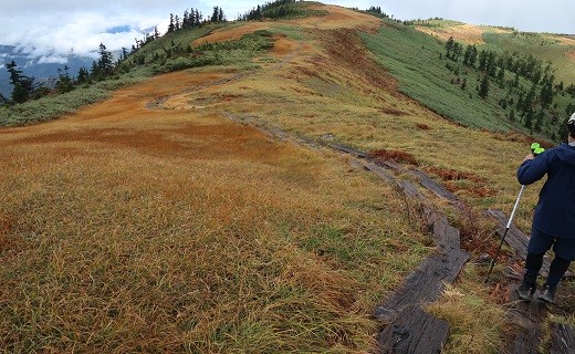 老朽化した木道は、湿原の踏み込みだけではなく、登山者の怪我にもつながっており、自然保護と登山者の安全性・利便性向上のために木道の整備が早急に望まれています。