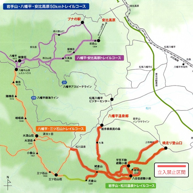 「岩手山-八幡平-安比高原 50kmトレイル(以下、「50kmトレイル」)」は岩手山に始まり、八幡平を経て、安比高原に終わる…そんな一筆書きのロングトレイルコースです。