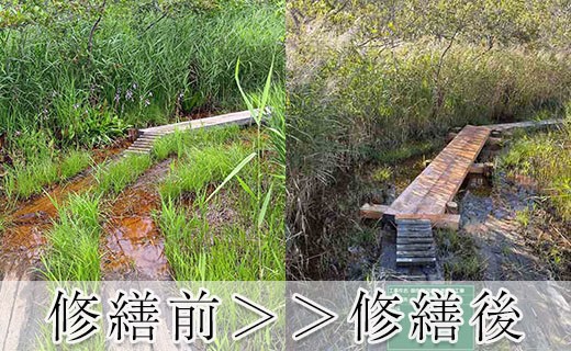 昨年いただいたご支援の一部を使って、御在所沼遊歩道をはじめ数か所、遊歩道の修繕を行いました。