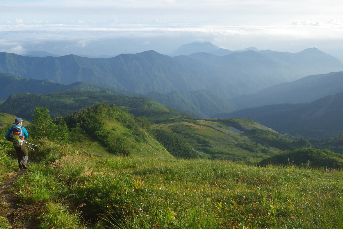 標高3,000m級の北アルプスから日本海へと続く栂海新道は、まさに大地の境界線にあるシンボル。