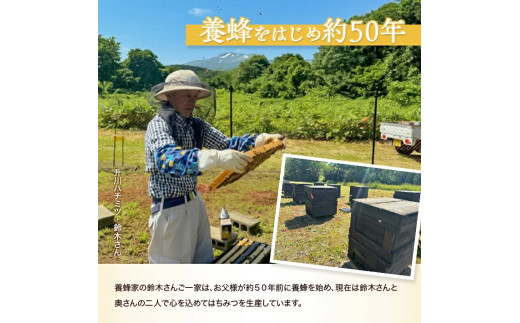 養蜂家の鈴木さんご一家は、お父様が約50年前に養蜂を始め、現在は鈴木さんとその妻の二人で心を込めてはちみつを生産しています。小さな養蜂場のため、一度に採取できる量には限りがありますが、一つ一つ手作業で採取し、真心を込めて瓶詰めしています。