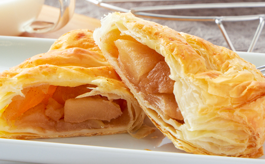 そのりんごでおいしい煮リンゴを作り、職人の手で作られた特製のパイ生地に一つ一つ丁寧に包み焼き上げたアップルパイは、上品な甘さで田園プラザ人気製品のひとつでもあります。