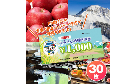 ・川場村ふるさと納税感謝券[1,000円分感謝券×30枚]