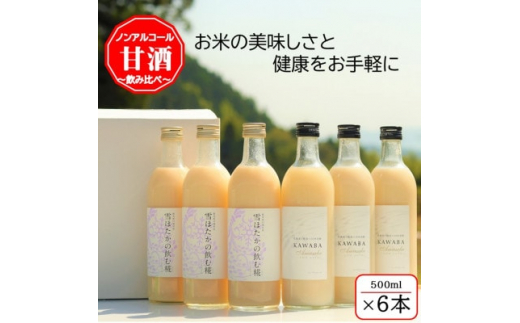 雪ほたかの飲む糀「飲み比べセット」<うるち米×3本・×KAWABA AMAZAKE(ホエイ)3本>【1457203】
